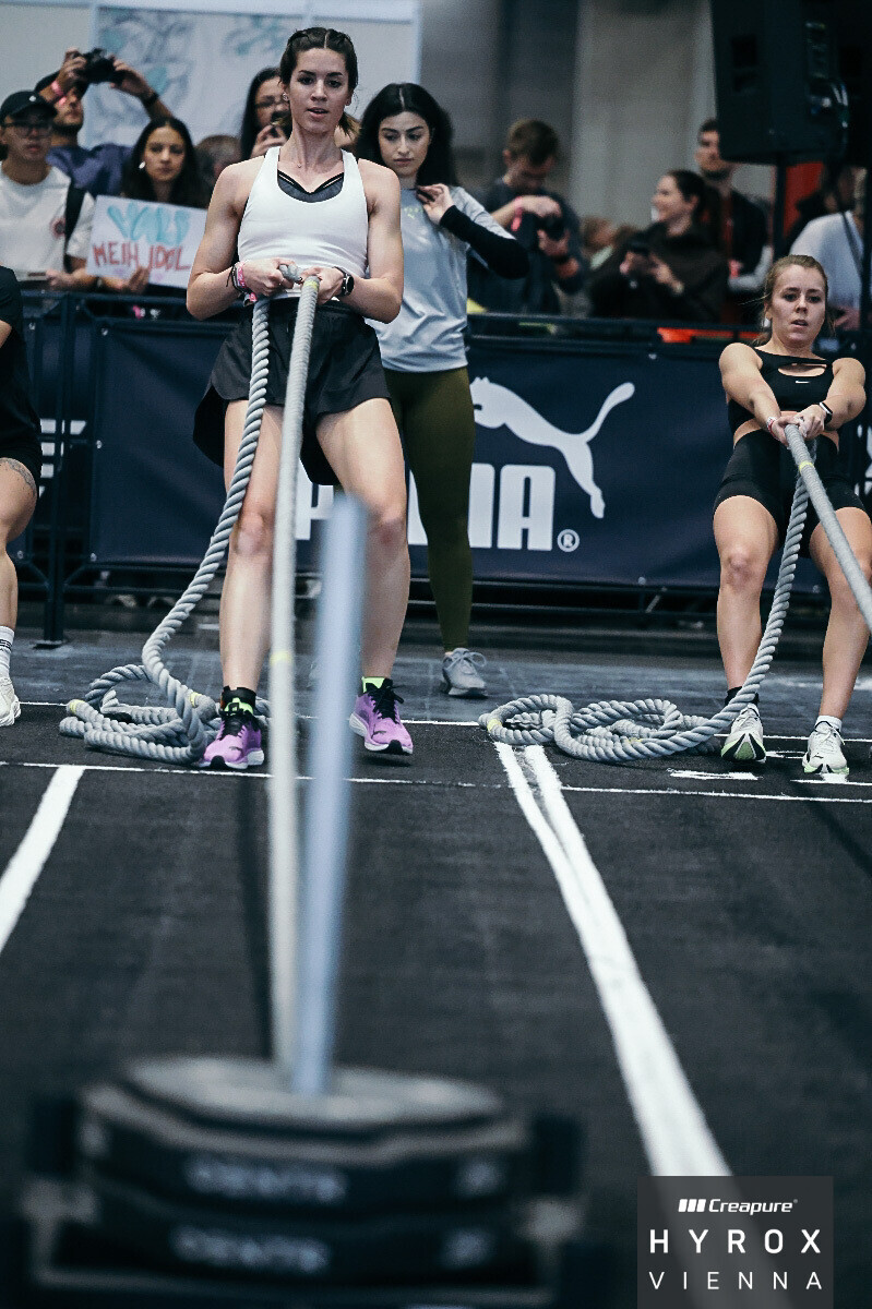 A HYROX egy világszintű fitneszverseny, ahol az erő, állóképesség és kitartás kerül próbára – 8 állomás, köztük futás, evezés, kitörések, burpee-k, és még sok más.